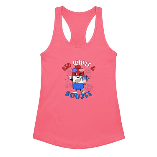 Red White And Bougie 4th of July Patriotic Women’s fitted racerback tank top