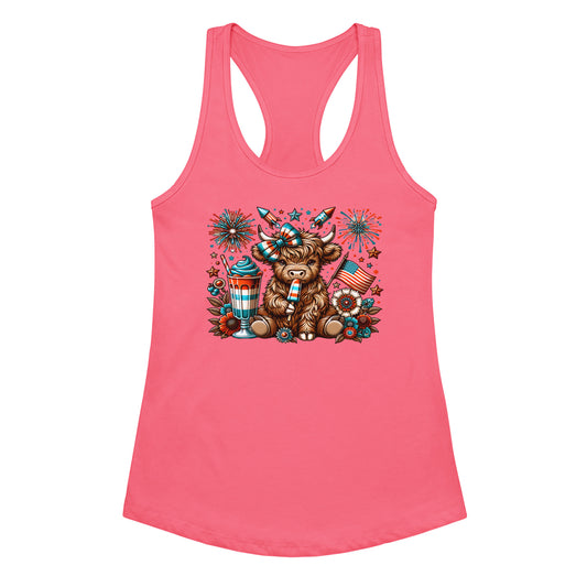 4th of July Highland Cow Patriotic Women’s fitted racerback tank top
